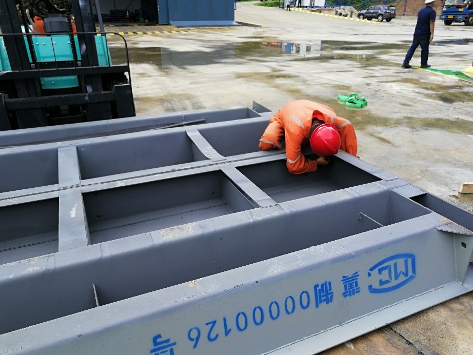 全鋼結(jié)構(gòu)模塊式稱重臺(tái):鋼結(jié)構(gòu)、低平臺(tái)、無(wú)橋欄、模塊化。U型主梁,中間剖分,用螺栓連接,裝拆簡(jiǎn)易,安裝方便。適合20英尺、40英尺,高柜或開頂集裝箱運(yùn)輸。